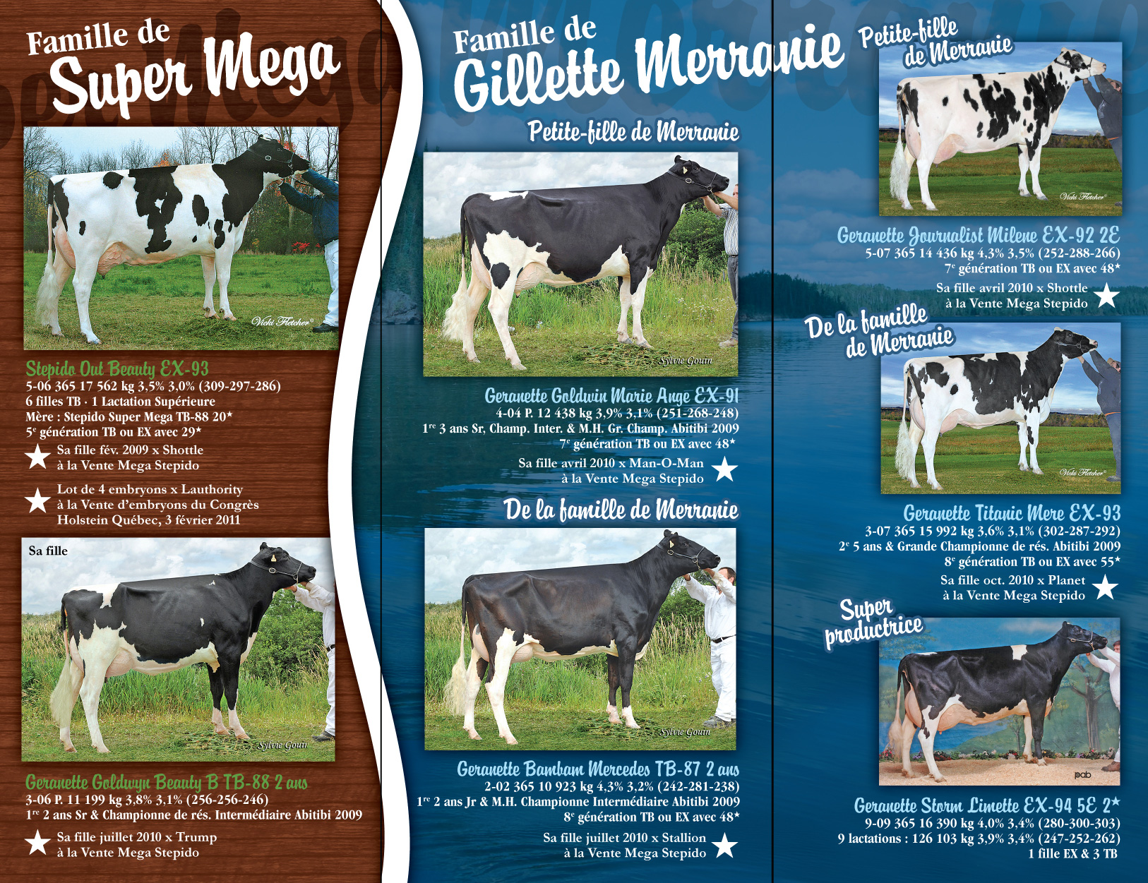 ![]() Nos 2 vaches qui sucitent le plus d'intérêts pour les embryons & les contrats en I.A. Famille de Stepido Super Mega TB-88 33* Découvrez notre nouveau dépliant
